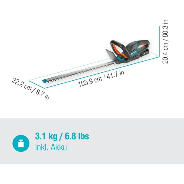 Schreibe die erste Rezension für „GARDENA Akku-Heckenschere ComfortCut 60/18V P4A, Ready-To-Use Set (grau/türkis, Li-Ion Akku 2,5Ah P4A, POWER FOR ALL ALLIANCE)“