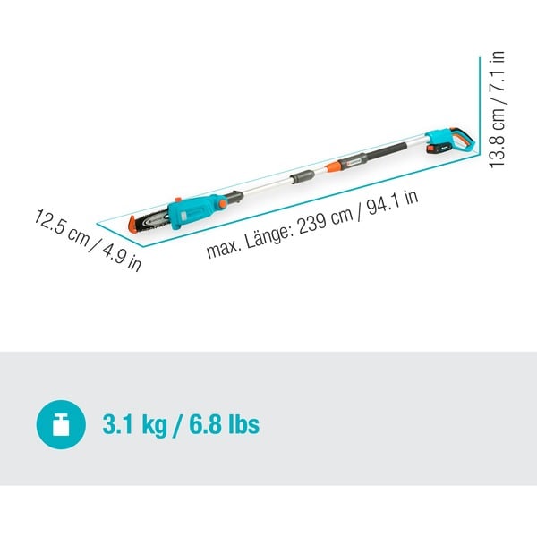 GARDENA Akku-Teleskop-Hochentaster TCS 20/18V P4A solo (türkis/grau, ohne Akku und Ladegerät, POWER FOR ALL ALLIANCE)