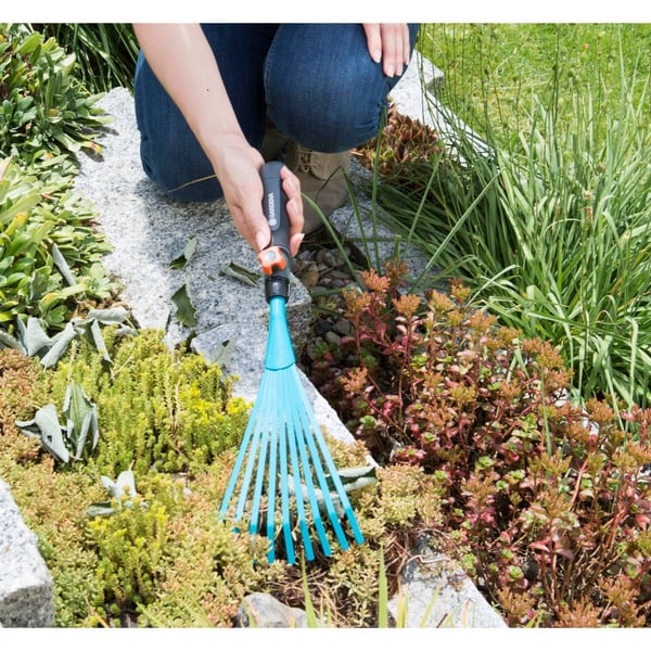 Der GARDENA combisystem-Kleinbesen eignet sich optimal zum Zusammenrechen von Laub, Unkraut und Grasschnitt in kleinen Beeten und schwer zugänglichen Bereichen. Der ergonomisch geformte Griff mit eingearbeiteter Weichkomponente liegt perfekt in der Hand und ist am Ende abgewinkelt, so dass man nicht abrutschen kann. Für ein angenehmes Arbeiten ohne Bücken kann man den Handgriff einfach abnehmen und durch einen beliebigen combisystem-Stiel ersetzen. Dafür wird der Handgriff einfach über die Weichkunststoff-Schraube gelöst, ein anderer Stiel aufgesetzt und festgeschraubt. Der Kleinbesen hat eine Arbeitsbreite von 12cm. Er ist aus hochwertigem Qualitätsstahl gefertigt. Die Duroplast-Beschichtung sorgt für eine lange Lebensdauer, denn sie schützt das Gerät vor Korrosion, macht es unempfindlich für Schmutz und besonders widerstandsfähig.Art.-Nr.: 1308197