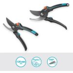 Die GARDENA Gartenschere PremiumCut Pro – Frisches Holz eignet sich zum sauberen, exakten Schneiden von jungen Trieben, frischem Holz und grünen Pflanzen. Die antihaftbeschichteten Klingen aus Qualitätsstahl liefern einen sauberen und glatten Schnitt. Die spezielle Beschichtung PowerCoating verbessert die Schneidleistung, schützt die Klingen vor Korrosion, und sorgt für eine leichte Reinigung. Die Schere liegt gut in der Hand und ist durch das geringe Gewicht und die ergonomischen Griffe mit Weichkomponente auch ideal für längere Einsätze geeignet. Der Puffer zwischen den Griffen schont außerdem das Handgelenk. Für die Rückfederung sorgt eine langlebige Edelstahlfeder, die innenliegend angebracht ist. Dadurch kann sie nicht verschmutzen oder verloren gehen. Die glasfaserverstärkten Griffe sind besonders robust und werden aus über 40% recyceltem Kunststoff hergestellt. Mit dem Einhand-Sicherheitsverschluss kann die Schere nach der Gartenarbeit einfach geschlossen und sicher aufbewahrt werden. Die Bypass-Gartenschere PremiumCut Pro – Frisches Holz schneidet einen maximalen Astdurchmesser von 24mm und kann zum bequemen Reinigen und Warten vollständig zerlegt werden.Art.-Nr.: 100081827