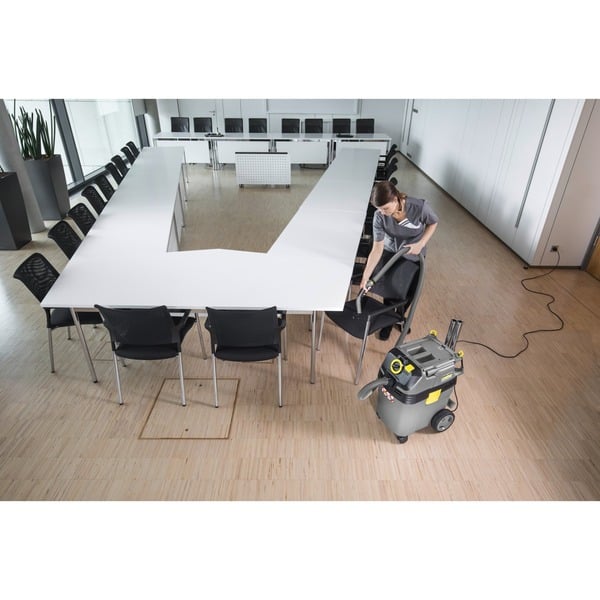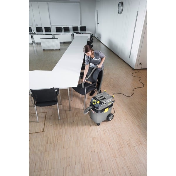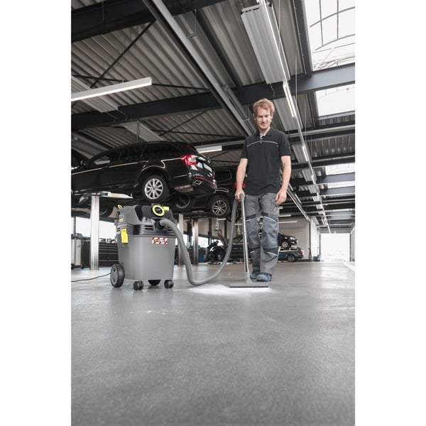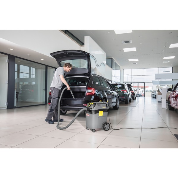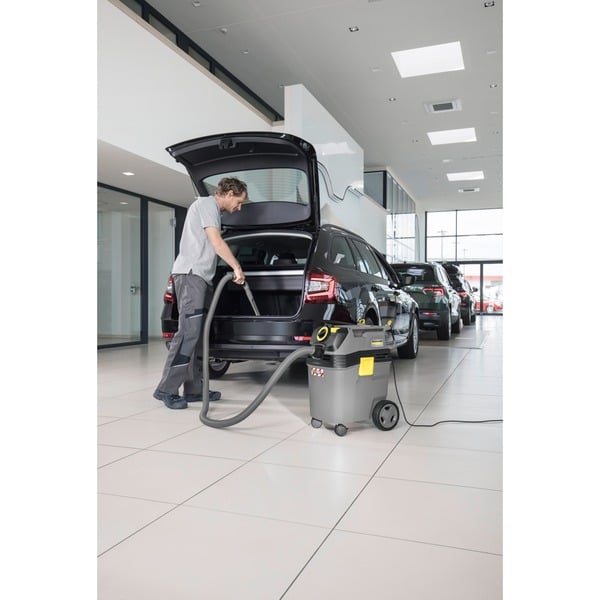 Der hochwertige Nass-/Trockensauger NT 40/1 Ap L von Kärcher mit seinen 40 Litern Fassungsvermögen des Behälters und halbautomatischer Filterabreinigung, die im Zusammenspiel mit der herausragenden Saugleistung sogar dann die Entfernung von Feinstäuben ermöglicht, wenn ohne Filtertüte gearbeitet wird, ist vielfältig einsetzbar, ob zur Beseitigung von Grobschmutz und Flüssigkeiten, zum Absaugen von Maschinen und Anlagen oder beispielsweise auch zur Fahrzeuginnenreinigung, und gespickt mit durchdachten Details zur Aufbewahrung des komplett neu entwickelten Zubehörs. Unter anderem wurde sein Kopf so flach entworfen, dass mühelos ein Werkzeugkoffer darauf abgestellt und dank der Verzurrmöglichkeiten auch befestigt werden kann. Darüber hinaus überzeugt der NT 40/1 Ap L mit seiner sehr einfachen Bedienbarkeit. Dabei werden alle wichtigen Funktionen direkt über einen zentralen Drehschalter ausgewählt und eingestellt.Art.-Nr.: 1490356
