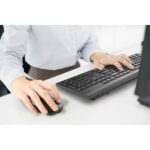 Das wiederaufladbare Kensington KM270 EQ Desktop-Set ist ideal für den unternehmensweiten Einsatz und bietet eine funktionsreiche kabellose Lösung, die Funktionalität mit Nachhaltigkeit verbindet. Die ISO-Tastatur verfügt über sechs Reihen mit Membrantasten und einem Ziffernblock und ist damit ideal für alle, die ihre Produktivität maximieren möchten. Mit der speziellen Copilot-Taste habt man die KI-Unterstützung immer zur Hand (nur unter Windows). Mit der Funktionstastensperre kann man ganz einfach zwischen den Standardfunktionen und den speziellen Medienfunktionen hin- und herschalten. Eine versiegelte Membran sorgt dafür, dass verschüttetes Wasser, Kaffee oder andere Flüssigkeiten die Elektronik nicht beschädigen und einfach abgewischt werden können. Die Maus des KM270 EQ ist deutlich leiser als eine Standardmaus und reduziert die Geräuschentwicklung an belebten Arbeitsplätzen. Sie ist sowohl für Links- als auch für Rechtshänder geeignet und verfügt über ein mittiges Scrollrad mit drei Tasten, um effizientes Klicken und Scrollen ermöglicht. Das KM270 EQ bietet zudem zwei praktische und sichere Verbindungsoptionen: Einen kompakten USB-A-Nano-Empfänger für eine zuverlässige kabellose 2,4-GHz-Verbindung mit AES-128-Bit-Verschlüsselung und Bluetooth 5.0 für nahtlose kabellose Konnektivität. Es ist kompatibel mit Windows und macOS.Art.-Nr.: 100105031