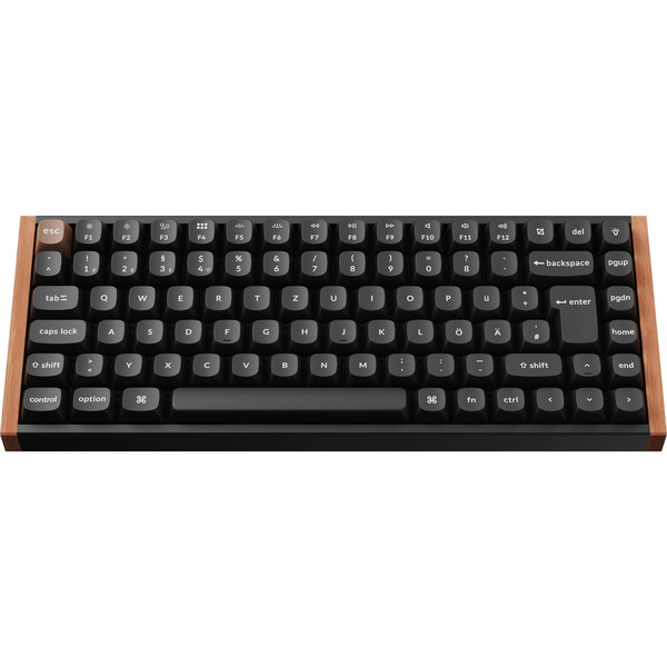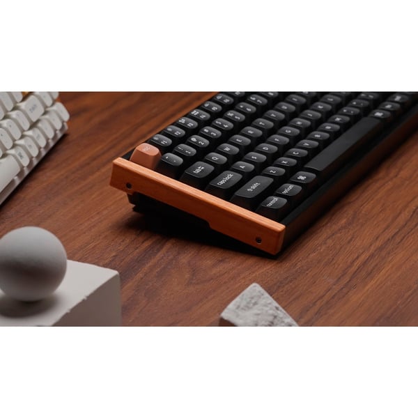 Besonderheiten Aluminiumrahmen mit Holz, durchscheinende Double-Shot-PBT-Tastenkappen mit OSA-Profil (OEM-Profil mit sphärischem Winkel), einstellbare Betätigungspunkte von 0,2 – 3,8 mm, 4-in-1-Aktionstasten für dynamische Tastenanschläge, Empfindlichkeit 0,1 mm, eingeschraubte PCB-Stabilisatoren, Trey-mount, Verbindung mit bis zu 3 Geräten, macOS-Windows-Umschalter, vollständige QMK- und VIA-Unterstützung