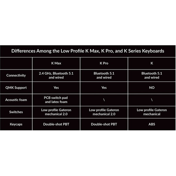 Hinweis Die K3 Pro ist derzeit nur mit mechanischen Low Profile Schalter von Gateron kompatibel, da QMK keine optischen Low Profile Schalter unterstützt.
