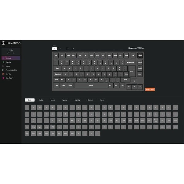 Die Keychron V1 Max ist eine vollständig anpassbare mechanische Tastatur, die mit ihrem kompakten 75-%-Format, der QMK/VIA-Unterstützung, dem Gasket-mount-Design dem schalldämpfenden Schaumstoff und den Double-Shot PBT-Tastenkappen für höchsten Schreibkomfort und gesteigerte Produktivität ausgelegt ist. Die V1 Max ist eine hervorragende Lösung für Multitasking: Sie lässt sich kabellos über Bluetooth 5.1 und 2,4-GHz-Funk mit bis zu drei Geräten, z.B. mit Laptop, Telefon und Tablet, verbinden, um schnell und bequem zwischen ihnen hin und her zu wechseln. Dabei ist sie sowohl mit Mac als auch mit Windows vollständig kompatibel. Wahlweise kann sie jedoch auch mittels USB-Typ-C-Kabel mit 1.000 Hz Polling-Rate verbunden werden, um kompetitive Spiele zu genießen. Der exklusive mechanische Gateron Jupiter Schalter verfügt über ein 5-poliges Design, ist mit einem zuverlässigen Gateron-Qualitätsstandard vorgeschmiert und hat eine Lebensdauer von bis zu 80 Millionen Tastenanschlägen. Die Hot-Swap-fähigen Sockel sind auf der Platine montiert, sodass die Schalter ohne Löten jederzeit gewechselt werden können. Das Einschraubdesign und ei präzise Verarbeitung der PCB-Stabilisatoren erhöhen die Stabilität, erleichtern Änderungen und Upgrades und machen das Tipperlebnis insbesondere mit den großen Tasten (Leertaste, Umschalttaste, Eingabetaste, Löschen) stabiler und flüssiger. Die nach Süden ausgerichteten RGB-LEDs sind so konzipiert, dass die Hintergrundbeleuchtung der Tastatur trotz der nicht-durchscheinenden PBT-Tastenkappen aus dem Blickwinkel des Tippers besser zur Geltung kommt. Die RGB-Beleuchtung ist dadurch auch frei von Interferenzen, wenn alternative OEM-Profil- oder Cherry-Tastenkappen installiert werden. Dank vollständiger QMK- und VIA-Unterstützung lässt sich jede Taste auf der Tastatur ganz einfach programmieren und neu zuordnen. Die Open-Source-Firmware bietet endlose Möglichkeiten für Tastaturlayouts, Verknüpfungen, Hintergrundbeleuchtungseffekte, sogar den Drehregler und mehr. Die Keychron V1 Max wurde auch unter Berücksichtigung der Erfahrung von Mac-Benutzern entwickelt und behält gleichzeitig die Kompatibilität mit Windows-Geräten bei. Sie ist mit einem Systemumschalter an der Seite ausgestattet, sodass sich zwei verschiedene Layouts auf der Tastatur speichern lassen.Art.-Nr.: 100080446