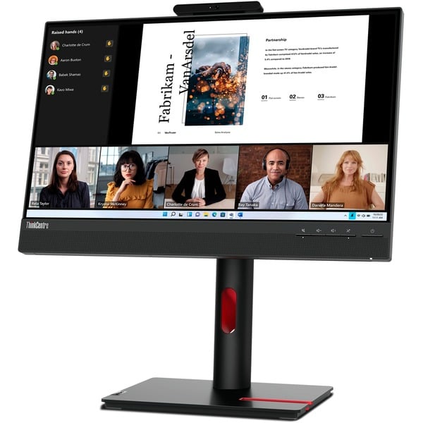 Der Hersteller bietet hier eine Monitor-Reihe an, die mit den Mini-PCs (Tiny-Serie) von Lenovo voll kompatibel ist. Der Tiny-in-One 22 kann dank seines modularen Designs mit den Hochleistungscomputern der Lenovo Produktreihen ThinkCentre und ThinkStation Tiny der 4. Generation verbunden werden. Diese können mühelos an dem speziellen Steckplatz auf der Rückseite des Bildschirms angeschlossen werden, sodass der Schreibtisch frei von lästigen Kabeln bleibt. Die Monitore aus der Tiny-In-One Reihe lassen sich also mit wenigen Handgriffen in einen echten All-In-One PC umwandeln. Zusätzlich zu den Tiny-PCs können über die HDMI- und DisplayPort-Anschlüsse andere Laptops oder Tower, und über die USB-Anschlüsse weitere Peripheriegeräte angeschlossen werden. Das Display des Tiny-in-One 22 Gen 5 Touch bietet Ihnen außerdem die Flexibilität, die kapazitive 10-Punkt-Touch-Funktion oder einen Stift 1 für einfaches Navigieren zu nutzen. Die 1080p-RGB-Webcam des Geräts mit geräuschunterdrückendem Mikrofon für klares Audio und Video vervollständigt die hervorragende Ausstattung des Tiny-In-One 22. Art.-Nr.: 100072703