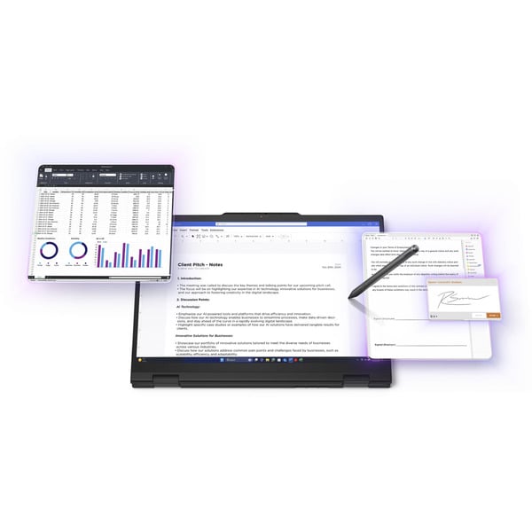Das ThinkPad T14s 2-in-1 G1 ist ein solider Business-Begleiter mit leistungsfähigem Innenleben. Dieses Notebook verfügt über ein Full-HD-Display (1920 x 1200 Pixel) mit einer Diagonale von 35,6 cm (14″). Ein Intel® Core™ Ultra 7 255U Prozessor stellt im Zusammenspiel mit 32 Gigabyte LPDDR5X-Arbeitsspeicher und einer ein Terabyte großen SSD ordentlich Rechenleistung bereit. Dieses Gerät hat zwei Thunderbolt 4 und zwei USB-A Anschluss. Hinzu kommen Wi-Fi 7, Bluetooth 5.4 und HDMI 2.1. Dieses Convertible-Notebook kann dank eines 360°-Scharniers als Notebook, Tablet oder aufgestellt zur Medienwiedergabe genutzt werden.Art.-Nr.: 100140261