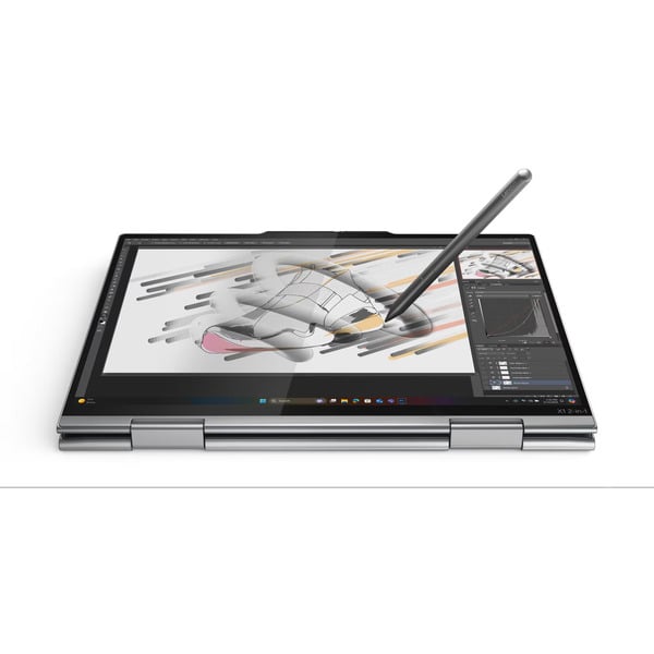 Das flache und leichte Convertible Lenovo ThinkPad X1 2-in-1 G10 Aura Edition (21Q0005VGE) bietet vier flexible Nutzungsmodi zum Arbeiten, Präsentieren, Erstellen und Surfen. Es bringt knapp 1,2 Kilogramm auf die Waage, ist unter 16 mm schlank und dabei mit seinem Aluminiumgehäuse trotzdem extrem robust. Ein hochwertiges, 35,6 cm (14″) großes Multitouch2,8k OLED-Display (2880 x 1800 Pixel) deckt 100% des DCI-P3-Farbraums ab. Es kann umgeklappt werden und ermöglicht damit die Nutzung des Geräts als Tablet. Mit einer ausgezeichneten Akkulaufzeit sowie WLAN bis Standard Wi-Fi 6E (802.11ax) ist dieses stilvolle Convertible für das schnelle, mobile Geschäftsleben von heute perfekt gerüstet. Es bietet mit einem Intel® Core™ Ultra 7 265U Prozessor, 64 Gigabyte LPDDR5X-Arbeitsspeicher und einer 2 Terabyte großen, Opal2-fähigen M.2 PCIe-SSD kompromisslose Leistung und Sicherheit.Art.-Nr.: 100137199