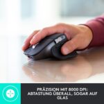• Leistungsstarke Maus: Ausgestattet mit Darkfield Laser Tracking, 7 Tasten und einer beeindruckenden Auflösung von bis zu 8.000 dpi. Die Quiet Click-Technologie sorgt für 90 % leisere Klicks, während MagSpeed Scrolling und ein Daumenrad die Navigation revolutionieren.