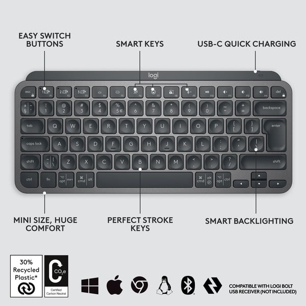 Logitech MX Keys Mini, Tastatur (graphit/schwarz, DE-Layout)