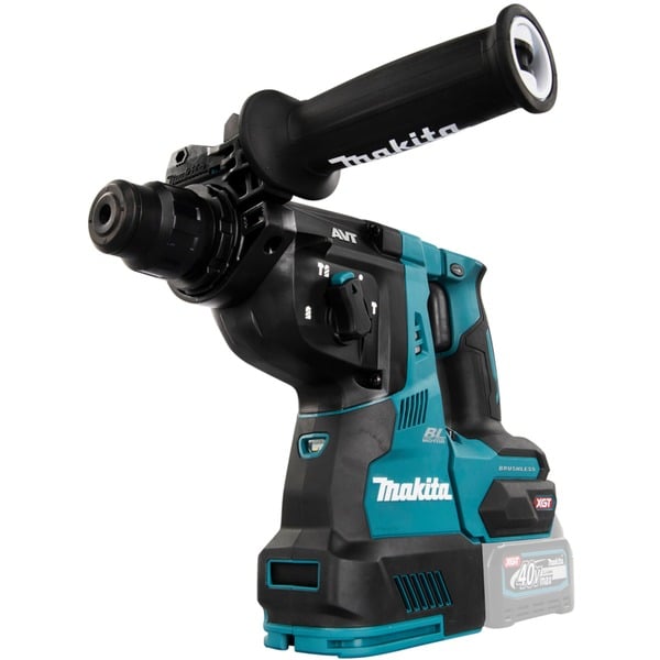 Der Makita HR003GZ ist ein leistungsstarker, robuster Akku-Kombihammer der 40 Volt XGT-Serie für höchste Ansprüche und harten Baustelleneinsatz. Er eignet sich zum Bohren und Hammerbohren, außerdem verfügt er über einen Drehstopp, damit auch leichte Meißelarbeiten möglich sind. Durch Verwendung eines bürstenlosen BL (Brushless) Motors wird die Akkukapazität noch effizienter genutzt als mit herkömmlichen Elektromotoren. Die SDS-Plus-Werkzeugaufnahme ermöglicht einen sehr schnellen Wechsel des Werkzeugeinsatzes. Außerdem verfügt der HR003GZ über eine Konstantelektronik, welche die Drehzahl auch unter Last konstant hält. Die Anti-Vibrations-Technologie (AVT) sorgt für extrem geringe Vibrationen. Für staubfreies Arbeiten kann die optionale Staubabsaugung DX12 aufgesetzt werden.Art.-Nr.: 1695856