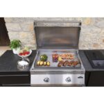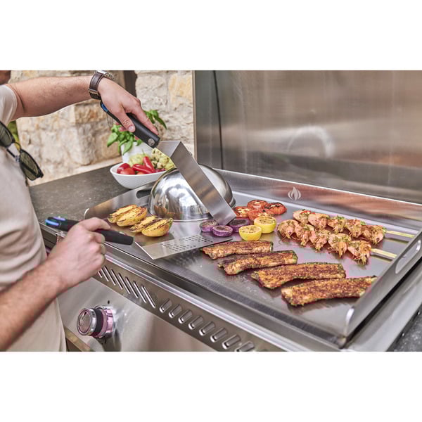 Der 32″ Einbau-Gasgrill der Serie 700 mit Plancha aus Edelstahl 430 bietet die hochwertige Grillqualität, die man von Napoleon Gasgrills gewohnt ist und erwartet, und fügt sich dabei nahtlos in die ideale Outdoor-Küche ein. Die rostfreie Konstruktion in Marinequalität überzeugt mit stilvoller Langlebigkeit und beispielloser Leistung. Die SAFETY GLOW Drehregler leuchten in einem herrlichen Blau, das zu Rot wechselt, wenn die Brenner in Betrieb sind. Der 32″ Einbau-Gasgrill der Serie 700 verfügt über einen praktischen abnehmbaren Deckel und ein integriertes Zündsystem für müheloses Starten mit nur einem Tastendruck. Zwei U-förmige Edelstahlbrenner sorgen für zwei unabhängig regelbare Temperaturzonen und eine gleichmäßige Wärmeverteilung. Das Zweizonen-Steuerungssystem ermöglicht präzises Braten und die gleichzeitige Zubereitung mehrerer Gerichte. Auf der großen Fläche können bis zu 28 Burger gleichzeitig gegrillt werden. Dank des effizienten Fettauffangsystems mit von vorne zugänglichen Fettbehälter gelingt die anschließende Reinigung schnell und einfach.Art.-Nr.: 100102363