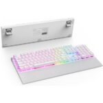 Tauchen Sie ein in eine Welt unvergleichlicher Präzision und Geschwindigkeit. Diese weiße Full-Size-Gaming-Tastatur wurde entwickelt, um Ihnen den entscheidenden Vorteil in jedem Spiel zu verschaffen, kombiniert mit herausragender Ästhetik und Haptik.