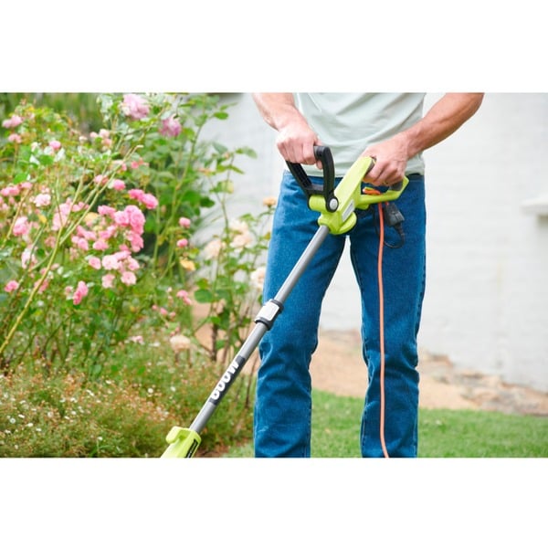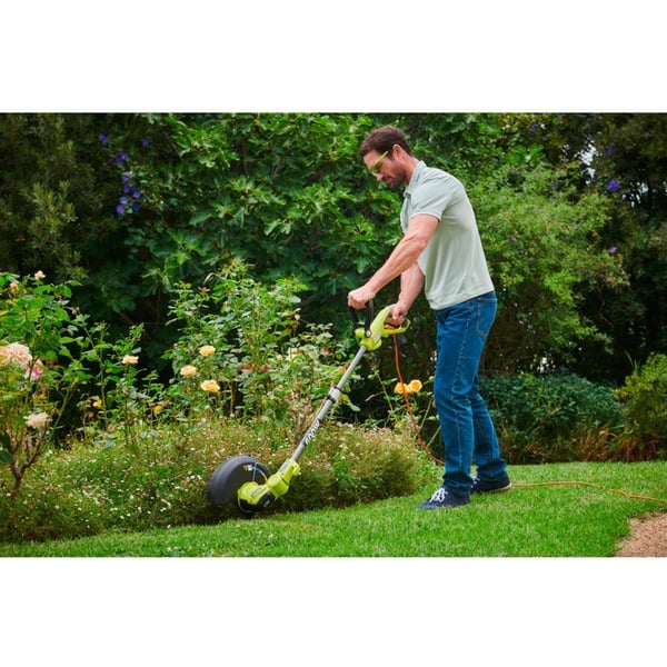 Mit dem Ryobi Rasentrimmer RLT6130 schneidet man Rasenflächen bequem und komfortabel. Die EasyEdge Funktion erlaubt einen leichten Wechsel zwischen Trimmen und Kantenschneiden, der Teleskopstiel und der verstellbare Zweithandgriff erleichtert die Führung. Die GripZone, das sind gummierte Anti-Vibrations-Griffflächen, bieten sicheren und komfortablen Halt bei der Arbeit. Der Rasentrimmer RLT6130 wird von einem leistungsstarken 600 Watt Motor angetrieben.Art.-Nr.: 1530893