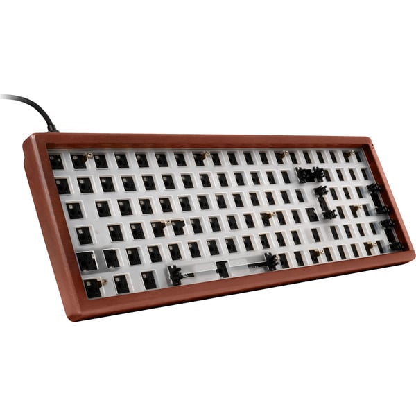 Volles Layout und selbst bei der Wahl von Schaltern und Tastenkappen volle Freiheiten: Die Sharkoon SKILLER SGK50 S2 Wood in der Barebone-Version besitzt die gleichen technischen Vorzüge wie der Rest der S2-Serie, darunter ein PCB, das ein schnelles Wechseln von Schaltern ermöglicht, oder die vollständige Konfiguration der Tastatur mittels VIA und QMK. Die Tastatur setzt auf ein kompaktes 3-Block-Format von 96 % mit 100 bzw. 101 Tasten. Neben der stilvollen Holzoptik der Wood-Serie, kommt die Barebone-Variante für Entschlossene aber komplett ohne vorinstallierte Schalter und Tastenkappen. So lässt sie sich ganz einfach mit Schaltern nach Wahl mit 3 und 5 Pins nutzen. Selbstverständlich sind die nötigen Werkzeuge zum Wechseln schon dabei. Damit die SKILLER SGK50 S2 Wood Barebone genauso gut klingt, wie sie aussieht, ist eine Positionierungsplatte aus Polycarbonat und eine doppellagige Silikondämpfung für einen satten, dumpfen Klang ohne schrille Störgeräusche verbaut. Zudem verfügt sie über eine bezaubernde RGB-Beleuchtung und ein abnehmbares Spiralkabel für eine einzigartigen Optik, die alle Blicke auf sich zieht.Art.-Nr.: 100068042
