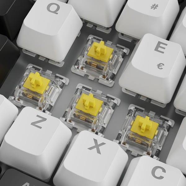Besonderheiten ABS-Tastenkappen, doppellagige Silikondämpfung, Positionierungsplatte aus Polycarbonat, QMK- und VIA-kompatibel