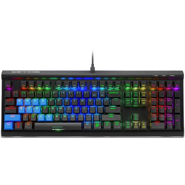 Die Sharkoon SGK60 ist eine mechanische Gaming-Tastatur im Full-Size-Format, bei der sowohl Vielschreiber als auch Gamer voll und ganz auf ihre Kosten kommen. Bei den Kailh BOX White handelt es sich um stark reaktive Tastaturschalter mit akustischem Feedback bei gleichzeitiger taktiler Spielcharakteristik, wodurch sie sich vornehmlich an Vielschreiber richten, die das Gefühl einer Schreibmaschine erleben wollen, wenn sie mit ihrer Tastatur arbeiten. Eine Lebensdauer von mindestens 80 Millionen Klicks sorgt für eine lange Haltbarkeit. Zusätzlich liegen der SGK60 14 reibungsfeste, im Double-Injection-Verfahren gefertigte PBT-Tastenkappen bei – für langanhaltende Freude ohne Gebrauchserscheinungen. Mittels Software lassen sich die RGB-Beleuchtung sowie 20 einzigartige Leuchteffekten für das Haupttastenfeld und das Edge Light entlang der Rückseite der Tastatur individualisieren. Die Beleuchtung kann zudem über separate Tasten bequem ein- und ausgeschaltet werden. Bis zu 391 Makroaktionen können ebenfalls über die Software programmiert und auf 20 Spieleprofilen gespeichert werden. Eine spezielle Makro-Taste erlaubt es dabei, diese blitzschnell abzurufen. Zu guter Letzt rundest die elegante Aluminiumoberfläche mit Diamantschliff rundet den Style der SGK60 ab.Art.-Nr.: 1628225