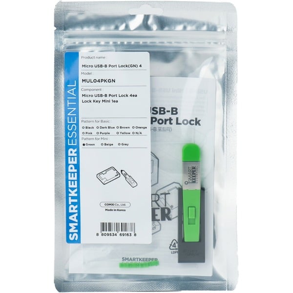 SMARTKEEPER ESSENTIAL Micro USB-B Port Lock (MUL04) + Lock Key Mini (U04), Einsteckschloss (Farbcode Grün, 4 Stück + 1 Schlüssel)