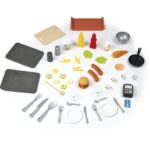 Ein eigenes Reich zum Kochen und bekocht werden: Das Smoby Spielhaus Chef bietet den perfekten Raum dafür! Durch die kleine Eingangstüre spazieren die Kinder hinein, laden Freunde und Geschwister zum gemeinsamen Spielen ein und können die Ausgabe-Theke nach Belieben öffnen und schließen. Als besonderes Extra ist an der Fassade eine Markise angebracht. Dieses Spiel-Restaurant für Kinder vereint Spielhaus, Kinderküche und Kaufmannsladen unter einem Dach. Das Innere des Häuschens hält viele Spielmöglichkeiten bereit: Kühlschrank, Backofen, Gasgrill mit beweglichen Flammen, Spüle mit Wasserhahn, Regale und Kreditkartenlesegerät. Weiterhin gibt es süße und herzhafte Spiellebensmittel, Ketchup, Brettchen und eine lustige Pancake-Pfanne zum kinderleichten Wenden der Pfannkuchen. Salz- und Pfefferstreuer mit Klick-Geräusch, Besteck, Geschirr und Kreditkarte runden die spielstarke Ausstattung ab. Mit der ausgewogenen Mischung aus Recyclingmaterial und neuem Kunststoff-Granulat sorgt dieses Spielhaus aus der Kollektion Smoby Life für die perfekte Balance aus Stabilität und Nachhaltigkeit. Durch das UV- und witterungsbeständige Kunststoffmaterial trotzt das Kinderspielhaus jedem Wetter und eignet sich perfekt zur Verwendung draußen im Garten oder auf Terrasse. Und sollte das Spielhaus mal im Weg stehen, so lässt es sich einfach wegheben.Art.-Nr.: 100125144
