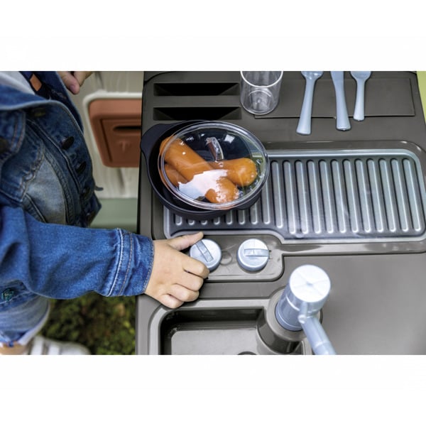 Mit der Smoby Life Sommerküche wird jedes Smoby Spielhaus zum kulinarischen Treffpunkt für kleine Hobbyköche! Diese Outdoor-Spielküche bietet alles, was Kinder für fantasievolles Kochen brauchen: eine realistische Grillplatte, eine Spüle mit funktionierendem Wasserhahn und umfangreiches Zubehör. Mit insgesamt 17 Teilen – darunter Teller, Besteck und Spiellebensmittel – können Kinder kreative Menüs zaubern und Geschwister, Freunde oder Eltern zu einem „Festmahl“ einladen. Dank ihrer UV-beständigen Materialien und robusten Bauweise bleibt die Küche auch bei längerem Außeneinsatz farbenfroh und intakt.Art.-Nr.: 100125169