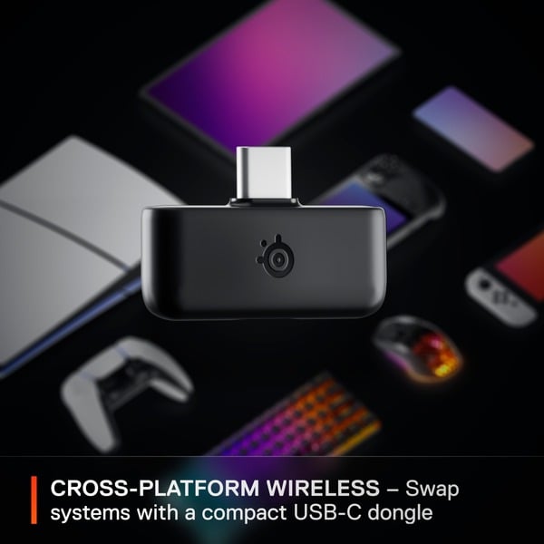 Mit dem Arctis Nova 5 und der Companion App können Sie erstmals bei SteelSeries auf mehr als 100 Presets zugreifen. Hören Sie mit diesen von Profis und Toningenieuren entwickelten voreingestellten Profilen, was andere nicht hören. Mit den perfekt auf beliebte Titel wie Fortnite, Apex Legends, Minecraft, GTA V und mehr abgestimmten Presets entgeht Ihnen kein Detail mehr. Ändern Sie die Audiovoreinstellungen in Echtzeit, ohne das Spiel verlassen zu müssen. Mit einer unglaublichen Akkulaufzeit von 60 Stunden können Sie die ganze Woche lang 8 Stunden am Tag spielen oder auch die Schnellladefunktion via USB-C nutzen, um in nur 15 Minuten Ladezeit weitere 6 Stunden gamen zu können. Mit Quick-Switch Wireless können Sie während des Spielens ganz einfach Anrufe entgegennehmen, indem Sie per Tastendruck von der blitzschnellen 2,4 GHz- auf die Bluetooth 5.3-Verbindung umschalten. Die mobilen Benachrichtigungen bleiben auf Standby, damit Sie auch während des Spielens Anrufe entgegennehmen können. Der Sound aus Games wie Fortnite bleibt auf der 2,4-GHz-Bandbreite, ohne die spezifischen Medienprofile für Bluetooth-Audio zu beeinträchtigen. Hören Sie mit einem ultra-detaillierten Klangbild aus kristallklaren Höhen, präzisen Mitten und tiefen Bässen jedes noch so kleine Detail. Die speziell entwickelten Neodym-Magnettreiber aus seltenen Erden sorgen für ein perfektes Klangerlebnis. Doppelte Brandbreite und Klarheit mit dem ClearCast-Mikrofon mit neuem Chipset für hohe Bandbreite, der 32 KHz/16 Bit Audio unterstützt. Geben Sie Ihrer Stimme mit der KI-gesteuerten Geräuschunterdrückung von Sonar auf dem PC einen Boost, indem Sie die beste Geräuschunterdrückung bei der Kommunikation in beide Richtungen ihrer Klasse nutzen. Fahren Sie das Mikrofon komplett ein und genießen Sie Inkognito-Komfort. Mit dem kompakten USB-C-Dongle, der mit all Ihren Systemen kompatibel ist, brauchen Sie nie wieder Abstriche machen: Er unterstützt PlayStation, PC, Switch, Meta Quest, Handheld-Geräte sowie Handys und Tablets, die USB-C unterstützen. Der starke ABS-Kunststoff sorgt für ein leichtes und robustes Design mit zwei stabilen schwenkbaren Armen und einem flexiblen Stoff-Kopfbügel, der den Druck gleichmäßig verteilt und für maximalen Komfort sorgt. Mit den praktischen Bedienelementen an den Ohrmuscheln können Sie mit der Power-Taste sofort loslegen, Sound stummschalten und die Lautstärke regeln. Und mit der Quick-Switch-Taste können Sie Bluetooth nutzen, um Anrufe entgegenzunehmen oder Ihre Lieblingssongs überall und jederzeit zu hören. Art.-Nr.: 100048138