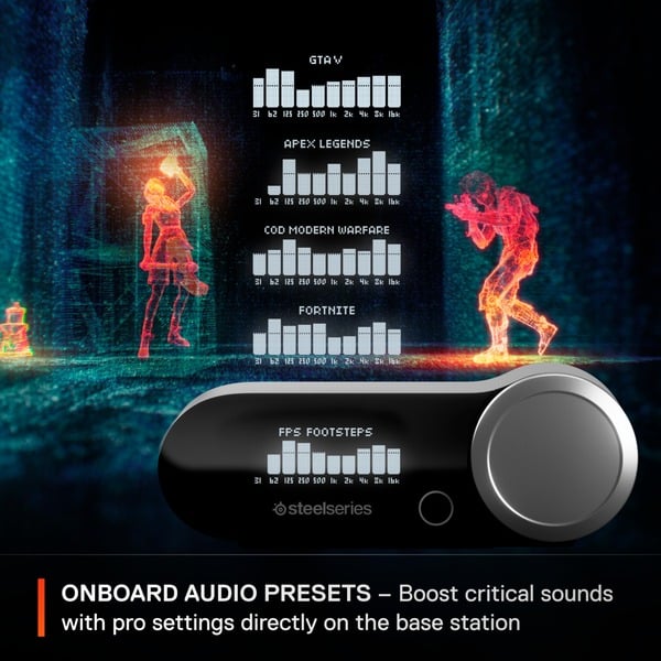 Mit dem SteelSeries Arctis Nova Pro Wireless ist man sofort startklar für die nächste Partie: Das Gaming-Headset bietet eine hohe Kompatibilität mit PC, Nintendo Switch, Playstation und mehr, dabei kann es drahtlos (Bluetoth) und per 3,5 mm Klinke oder über USB-C verbunden werden. Da die Hörmuscheln verstellt werden können, ist ein optimaler Sitz und eine gute Isolierung sicher gestellt, zusätzlich sorgt ANC (Active Noise Cancelling) mit dafür vorgesehenen Mikrofonen für einen Sound ohne Außengeräusche. Das dedizierte GameDAC erlaubt eine passgenaue Einstellung des Tons an den jeweiligen Inhalt und besitzt darüber hinaus ein brillantes OLED-Display zur besseren Erkennung. Neben einem satten Sound bietet das justierbare Mikrofon eine klare Sprachverständlichkeit, mit der man Taktiken optimal besprechen kann.Art.-Nr.: 100056177
