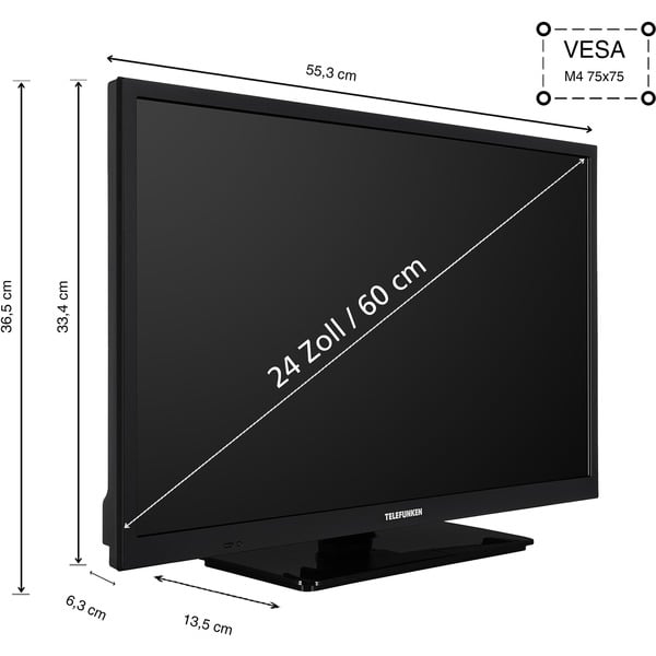 Telefunken XH24O550M, LED-Fernseher (60 cm (24 Zoll), schwarz, WXGA (HD-ready), Triple Tuner, Mediaplayer)