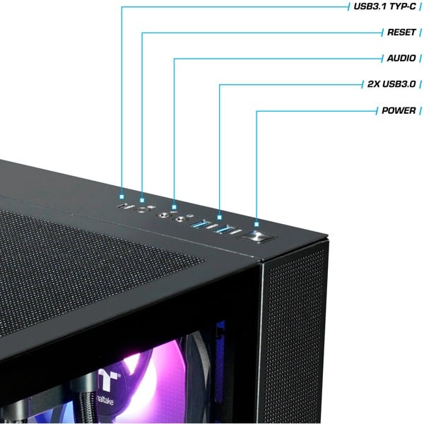 Gaming auf oberem Level mit dem FTW RTX 5080 Black von Thermaltake! Dieser Gaming-PC wurde um einen mit Wasser gekühlten AMD Ryzen 7 9800X3D Achtkern-Prozessor herum aufgebaut. Hinzu kommen 32 Gigabyte DDR5-Arbeitsspeicher und blitzschneller Massenspeicher in Form einer 2 Terabyte großen M.2 PCIe-SSD. Mit einer NVIDIA GeForce RTX 5080 mit 16 Gigabyte GDDR7-Grafikspeicher wird dieses starke Gaming-Paket komplettiert. Das Micro-Tower-Gehäuse View 380 TG ARGB stellt die Komponenten effektvoll zur Schau – mit stilvoller Glas-Verkleidung an der Seite und an der Front, die Gamer-Herzen höher schlagen lässt. Dieser PC lässt sich per 2,5 Gigabit-LAN und WLAN vernetzen und verfügt außerdem über insgesamt acht USB-Anschlüsse zum Verbinden von Peripheriegeräten. Windows 11 Home ist vorinstalliert.Art.-Nr.: 100114077