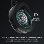 • Premium Klangqualität: Ausgestattet mit leistungsstarken 50 mm Nanoclear Treibern, liefert das Headset einen Frequenzbereich von 20 Hz – 20 kHz für kristallklaren Stereoklang und tiefe Bässe.