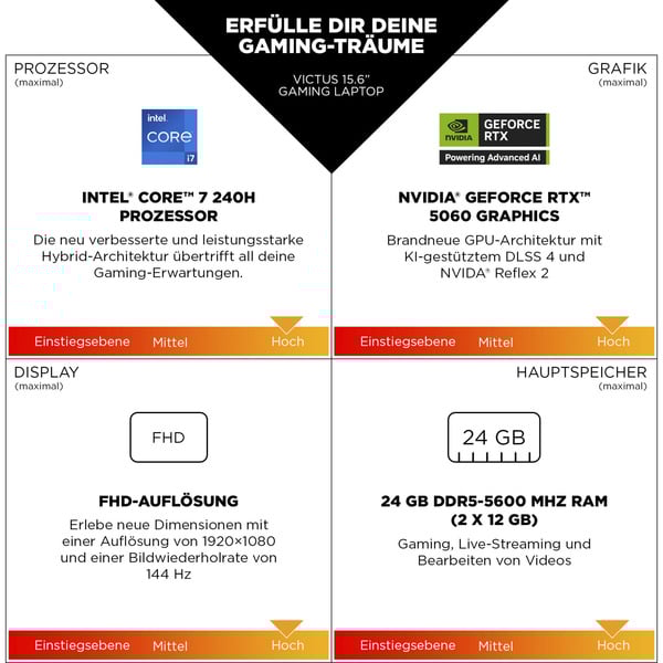 Schreibe die erste Rezension für „Victus by HP 15-fa2176ng, Gaming-Notebook (schwarz, Intel® Core™ i7-13620H, NVIDIA GeForce RTX 5060, 24 GB DDR5, 1 TB (1 TB SSD), Windows 11 Home)“