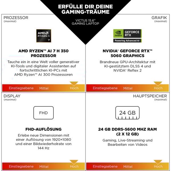 Schreibe die erste Rezension für „Victus by HP 15-fb3051ng, Gaming-Notebook (grau, AMD Ryzen 5 240, NVIDIA GeForce RTX 5050, 16 GB DDR5, 1 TB (1 TB SSD), Windows 11 Home)“
