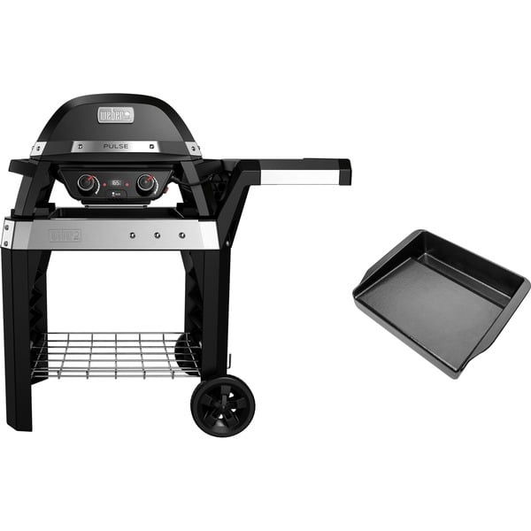 Weber Elektrogrill Bundle Pulse 2000 mit Wagen und Gusseisen-Grillplatte (schwarz/silber, 2.200 Watt)