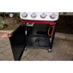 • Intelligentes Design: Der stabile Grillwagen verfügt über einen Unterschrank, der eine 11 kg Gasflasche aufnehmen kann. Praktische Seitenablagen aus Edelstahl und vier Lenkrollen, davon zwei mit Bremse, gewährleisten Mobilität und Standsicherheit.