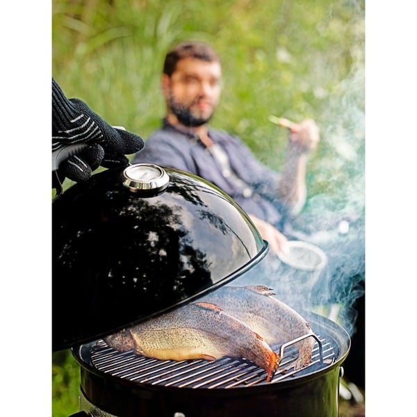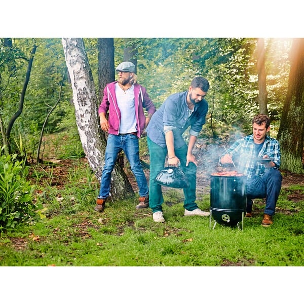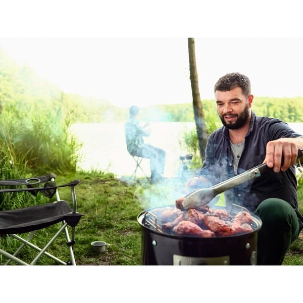 Der Stand Räucherofen Weber Smokey Mountain Cooker eignet sich perfekt für das Räuchern von Fisch und Fleisch. Auf zwei Ebenen und einem verchromten sowie klappbaren Grillrost mit 57 cm Durchmesser lassen sich große Fleischstücke oder verschiedene Fische perfekt räuchern und garen. Die drei Zuluftöffnungen lassen sich getrennt voneinander bequem einstellen um ein perfektes und rauchiges Aroma zu erreichen. Das integrierte Thermometer im Deckel zeigt die aktuelle Temperatur exakt an und dank der großen Öffnung des Smokey Mountain Cooker lassen sich Briketts und Räucherchips einfach und schnell nachlegen.Art.-Nr.: 1058079